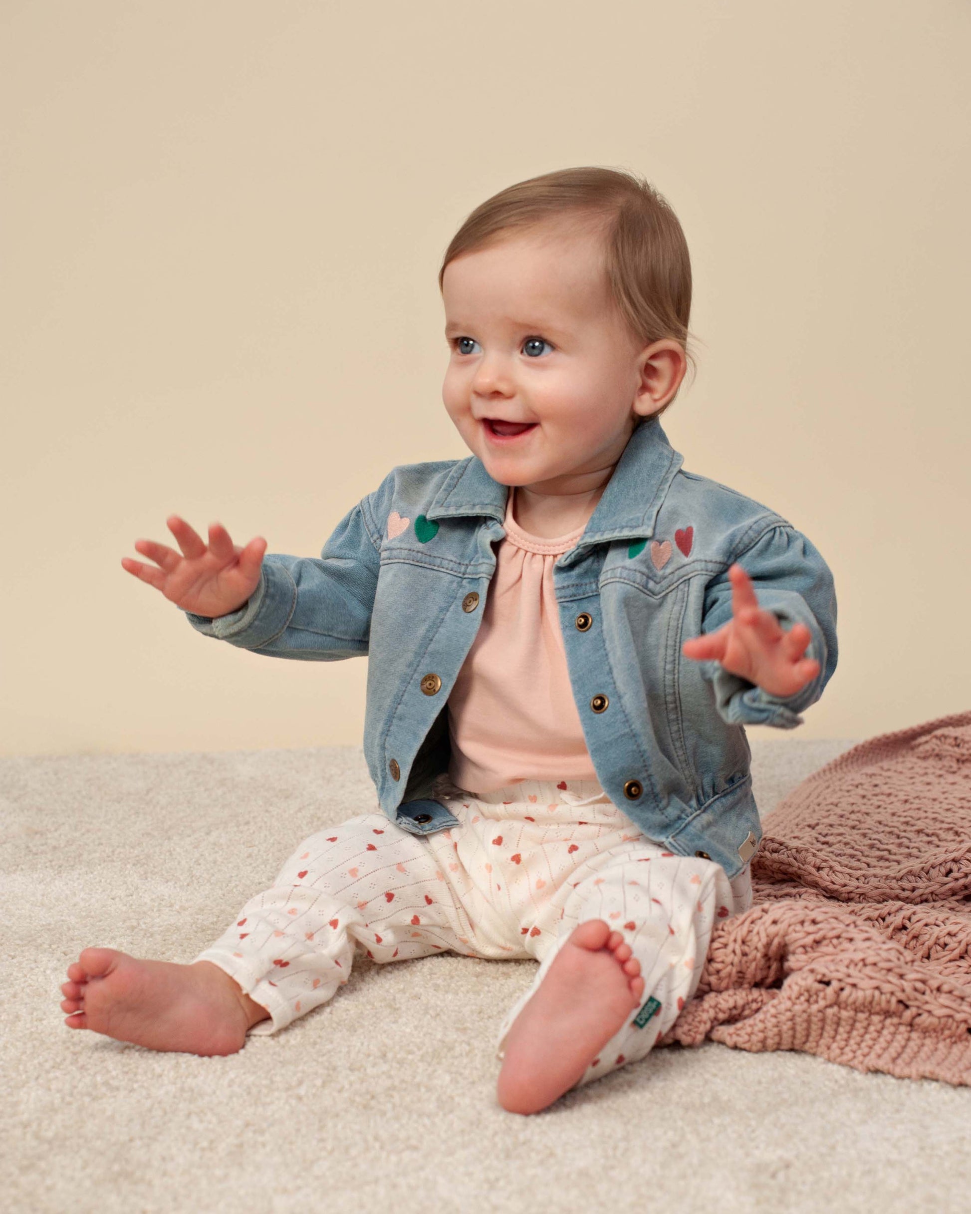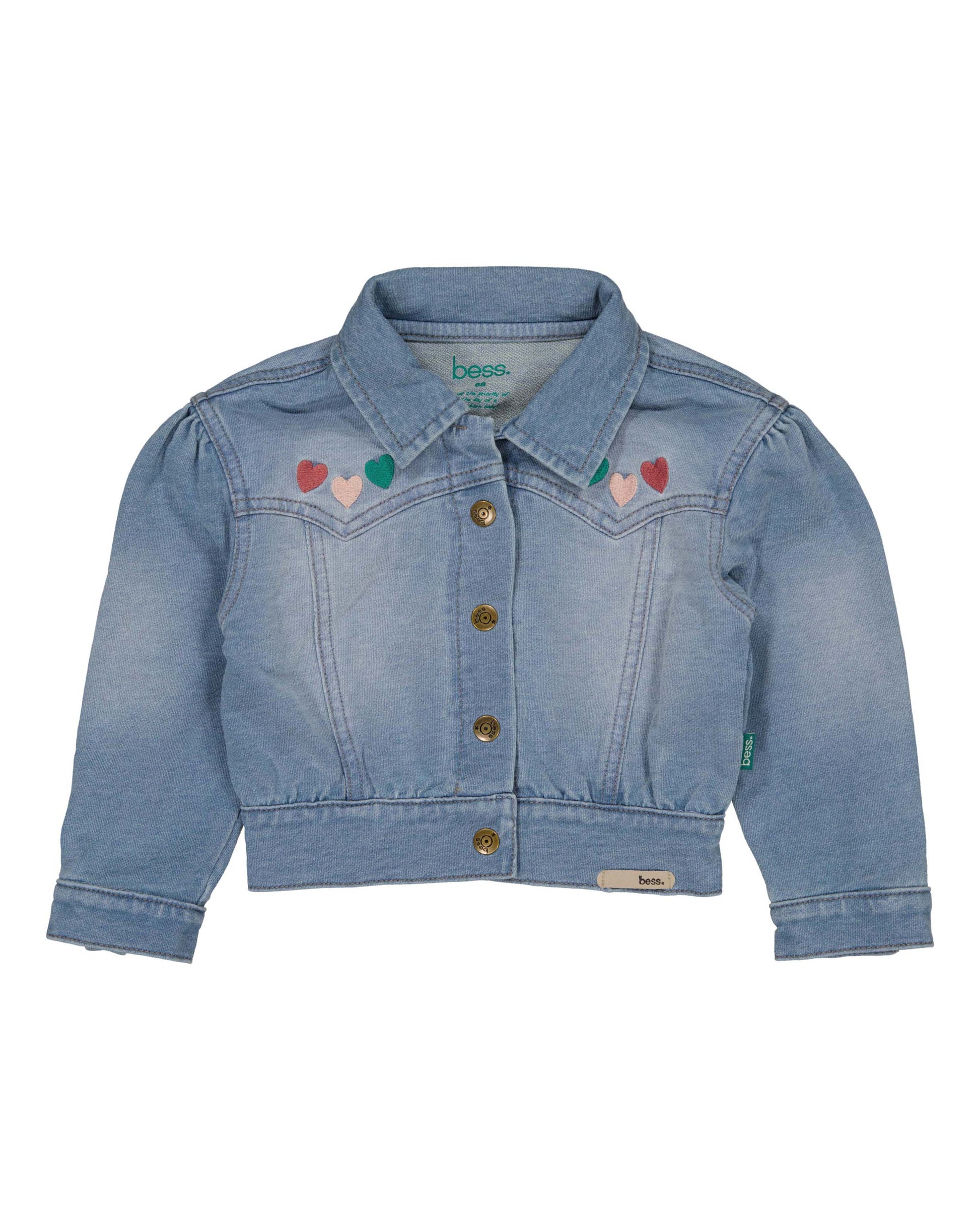 Dit schattige Bess meisjes spijkerjasje is perfect voor modieuze en speelse meiden. Dit jasje, gemaakt van 95% katoen, heeft een trendy hartjes opdruk die elke outfit opvrolijkt. Het biedt niet alleen comfort, maar ook een stijlvolle uitstraling. Laat je prinsesje stralen in dit unieke spijkerjasje!