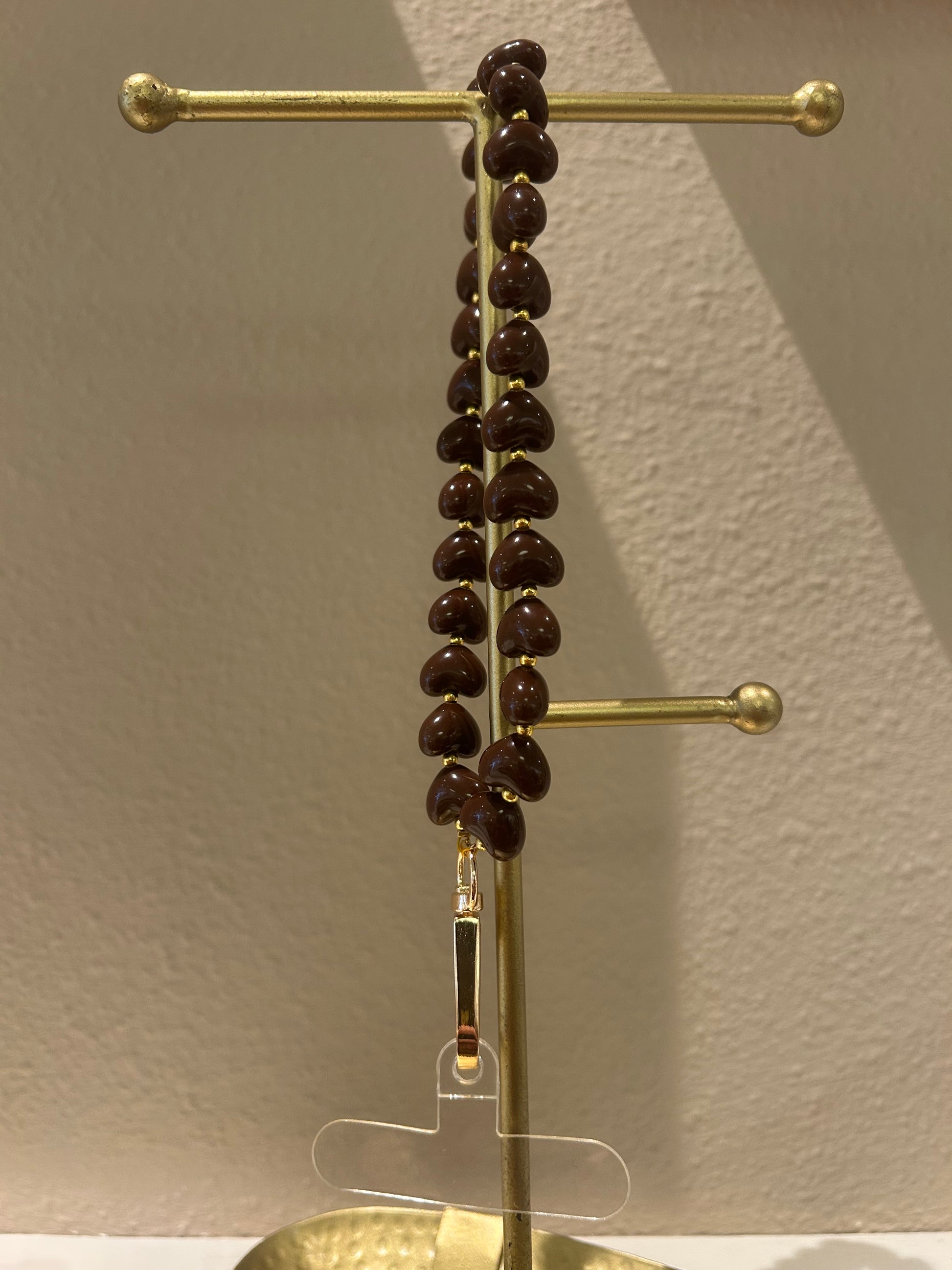 Universeel telefoonkoord kleine hartjes donkerbruin
