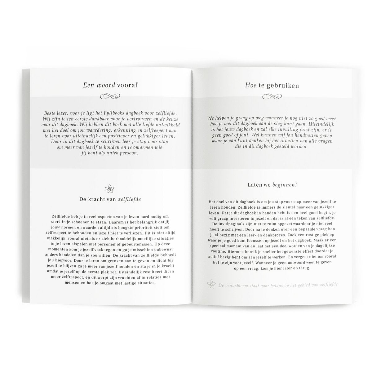 Zelfliefde is de sleutel naar een gelukkiger leven. Het doel van dit dagboek is om jou stap voor stap meer van jezelf te leren houden. Dat je dit dagboek wilt aanschaffen is een heel goed begin, je wilt graag investeren in jezelf en dat is al een teken van zelfliefde. Zelfliefde heb je in veel aspecten van je leven hard nodig om sterk in je schoenen te staan. Daarom is het belangrijk dat jij jouw normen en waarden altijd als hoogste prioriteit stelt om zelfrespect te behouden en jezelf niet te verliezen. Dit dagboek gaat je daarbij helpen! Door in dit dagboek te schrijven leer je stap voor stap om meer van jezelf te houden en te omarmen wie jij bent als uniek persoon. Dit is in een prestatiemaatschappij en met de invloed van social media niet altijd gemakkelijk, vooral niet als er zich herhaaldelijk moeilijke situaties in je leven afspelen met personen of gebeurtenissen. Uiteindelijk zul je een persoonlijke groei doormaken gedurende je in dit dagboek schrijft. Aan de hand van vragen ga je nadenken over jouw denkwijzen en gewoontes waardoor je er bewust mee aan de slag kunt gaan en aan kunt werken waar nodig. Door elke dag in dit dagboek te schrijven zul je stapje voor stapje meer zelfliefde en waardering ontwikkelen en begin je met het koesteren van wie jij bent. Door te focussen op (zelf)liefde zal je leven worden verrijkt met meer positiviteit wat uiteindelijk weer zal leiden tot groei en een beter zelfbeeld. Ook een prachtig en waardevol boek om cadeau te geven. De linnen cover en afwerking met goudfolie zorgt er voor dat het boek niet alleen fijn is om in te schrijven, maar ook een mooi item in je interieur kan zijn. Je hoeft het dus niet weg te leggen, wat weer motiveert om er elke dag in te schrijven.