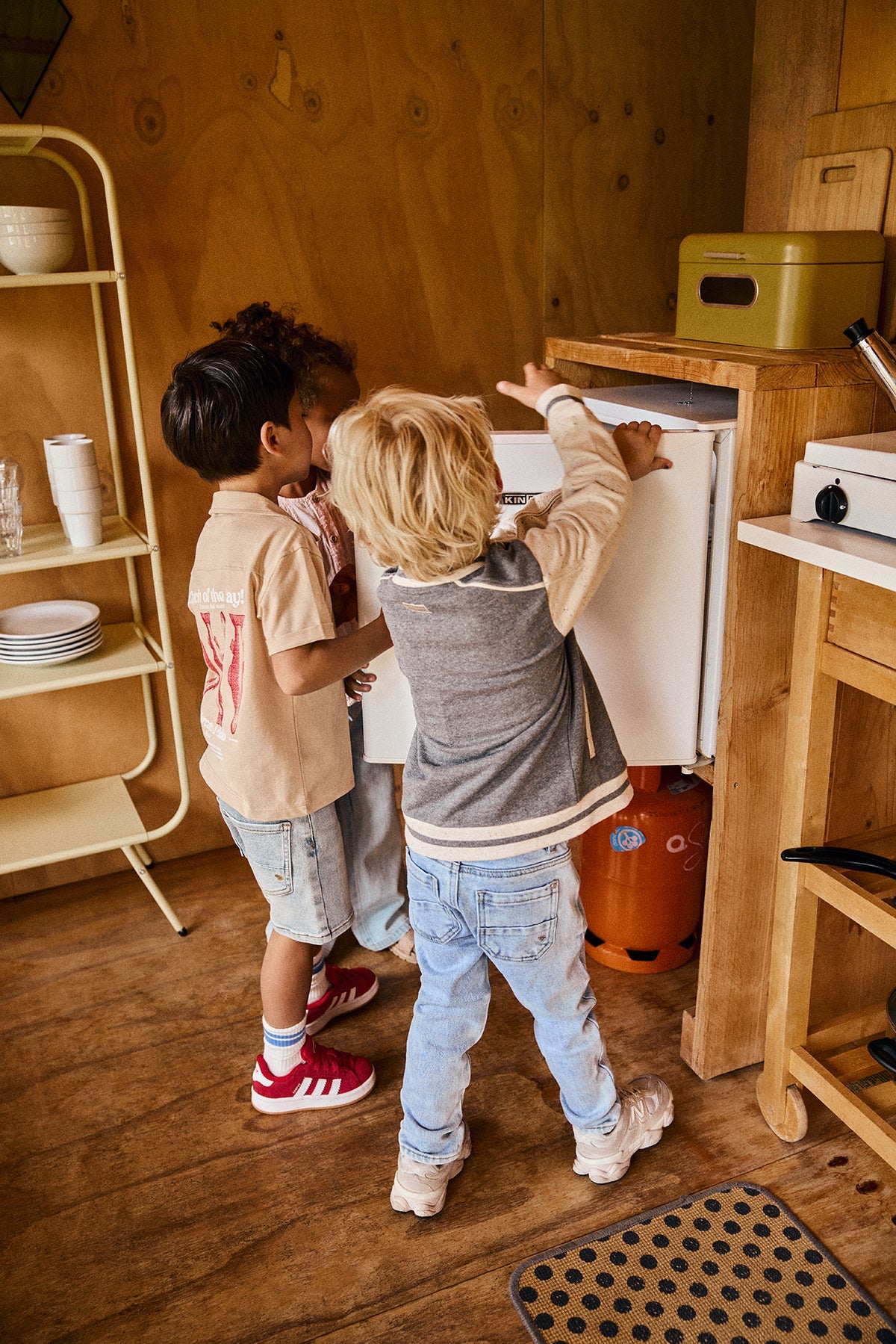 Met een polokraag, knoopsluiting en charmante vismarktprints op de voor- en achterkant is dit Latte Sand T-shirt gemaakt voor nieuwsgierige kinderen die willen stralen.