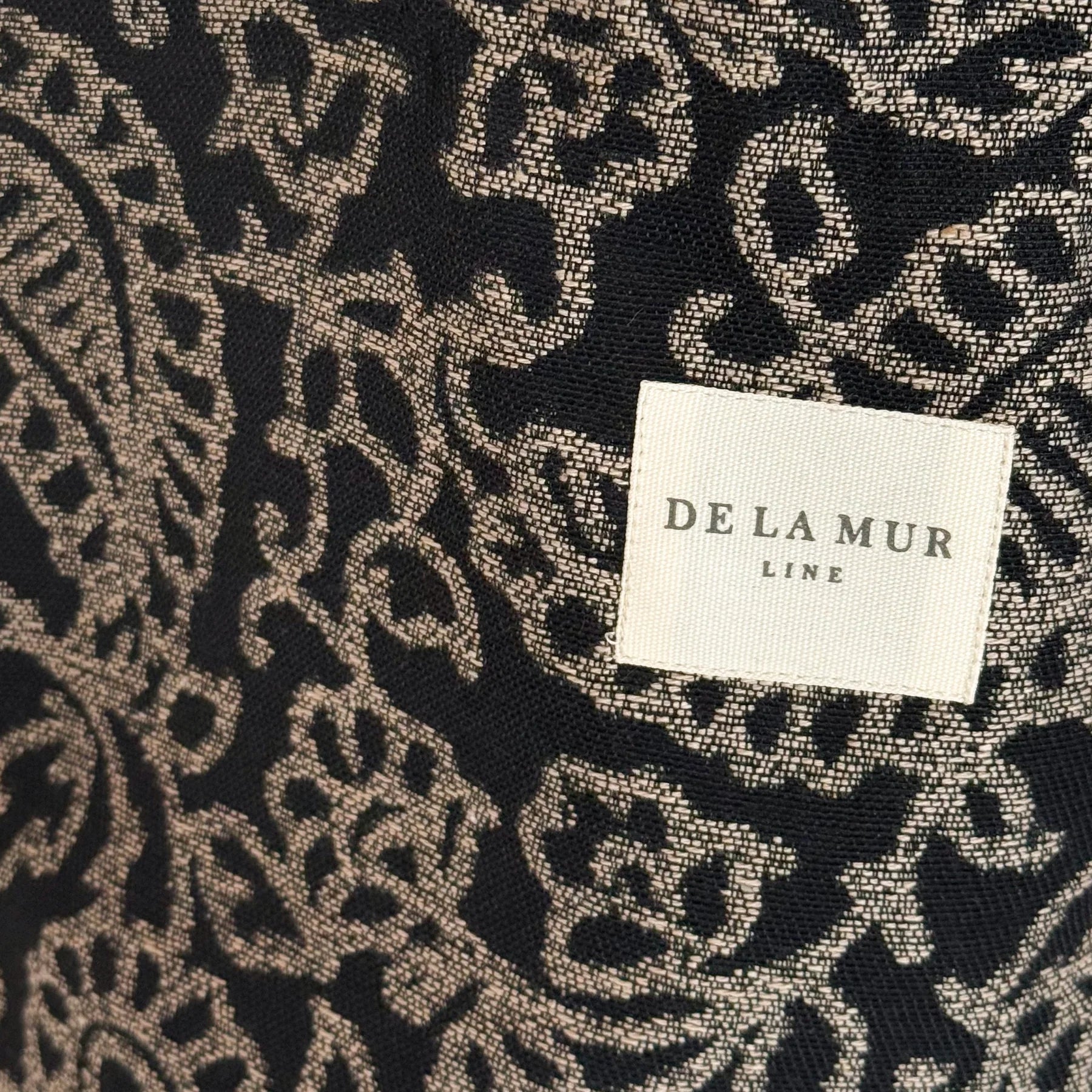 Grote shopper met hengsels om over de schouder te dragen. Gemaakt van stevige jacquardstof met een grijze bloemenprint op een zwarte achtergrond. Voor het juiste onderhoud wordt aangeraden de tas met de hand koud te wassen en niet in de droger te doen.
