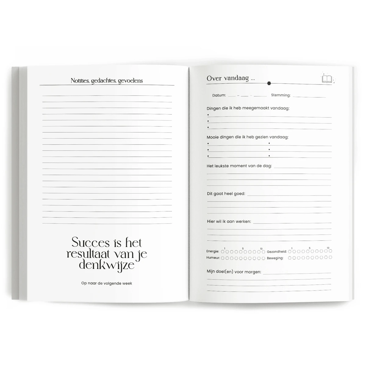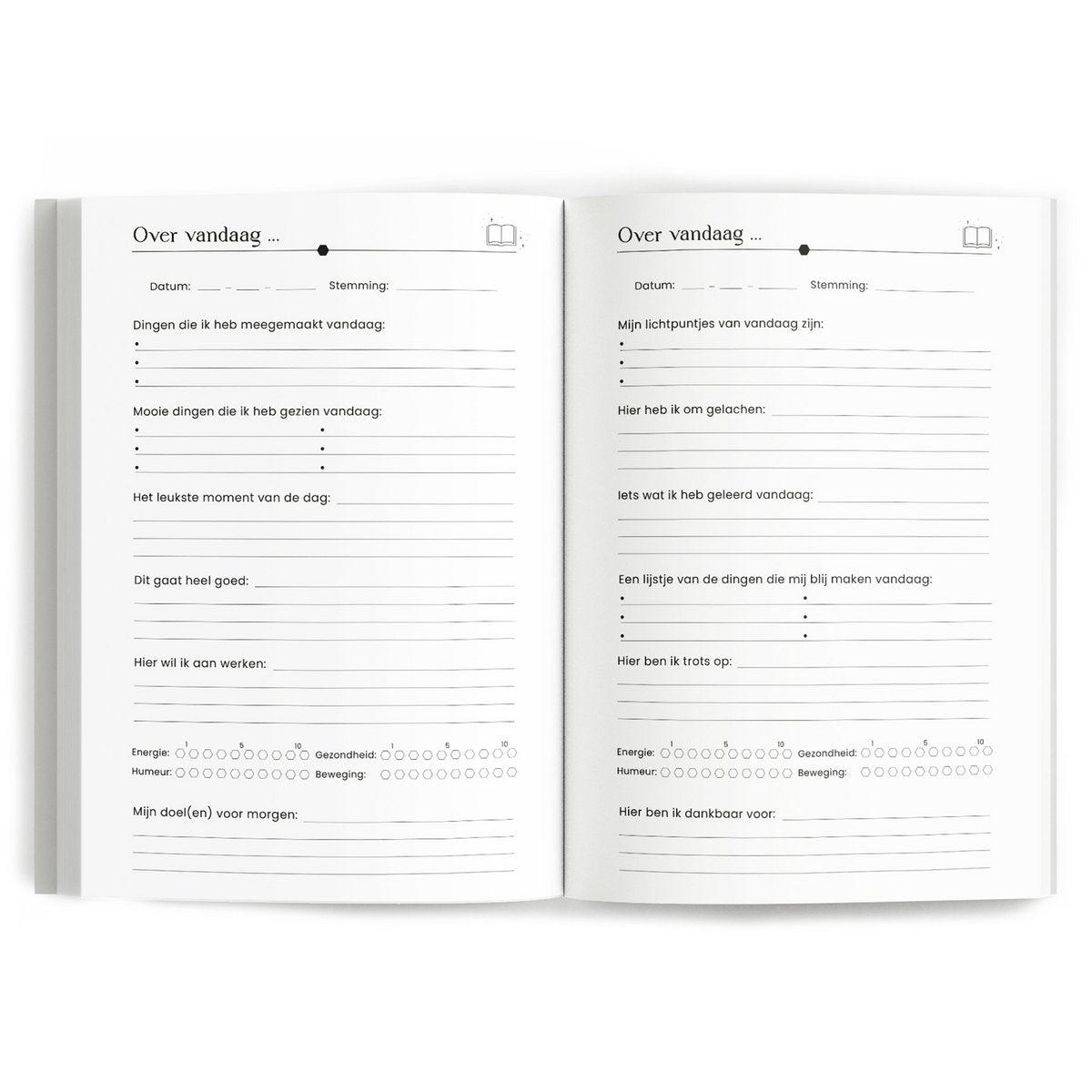 Het Fyllbooks Momentendagboek helpt je om elke dag even stil te staan en je gedachten en gevoelens op een eenvoudige manier op papier te zetten. Dit dagboek is ontworpen voor een periode van 13 weken en je kunt het op elk moment van het jaar starten. Of je nu begint in januari, juni of november, je kunt direct aan de slag. Elke dag biedt het dagboek een paar korte vragen. Het beantwoorden kost je slechts 5 tot 6 minuten, maar geeft je waardevolle inzichten en rustmomenten in je dag. Het invullen van het Momentendagboek helpt je bewust stil te staan bij kleine en grote momenten, zonder dat je veel tijd hoeft vrij te maken. Of je nu op zoek bent naar meer balans, zelfinzicht, of een gewoonte om even te reflecteren, dit dagboek maakt het eenvoudig om een vast moment voor jezelf in te bouwen, elke dag weer. Ook fantastisch om cadeau te geven!