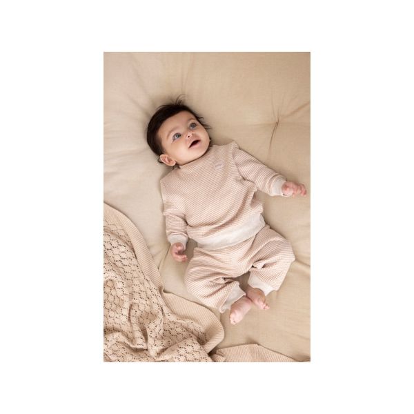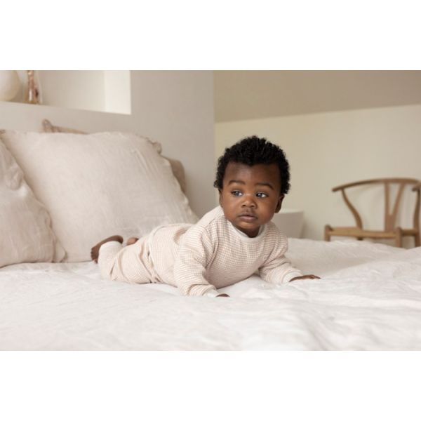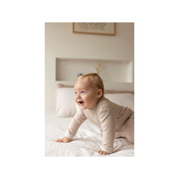 De Feetje Wafelpyjama is een comfortabele en stijlvolle pyjama die perfect past bij de behoeften van jouw opgroeiende kindje. Dankzij de zachte wafelstructuur en rustige kleur straalt deze pyjama rust uit, ideaal voor een goede nachtrust en ontspannen momenten thuis.