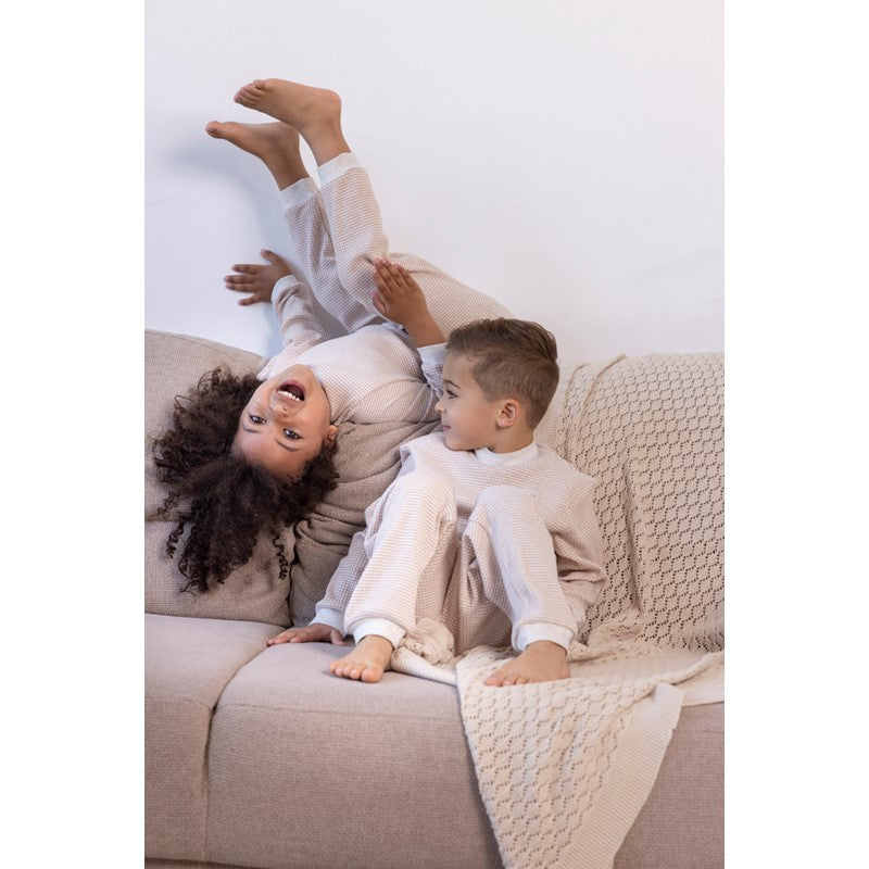 De Feetje Wafelpyjama is een comfortabele en stijlvolle pyjama die perfect past bij de behoeften van jouw opgroeiende kindje. Dankzij de zachte wafelstructuur en rustige kleur straalt deze pyjama rust uit, ideaal voor een goede nachtrust en ontspannen momenten thuis.