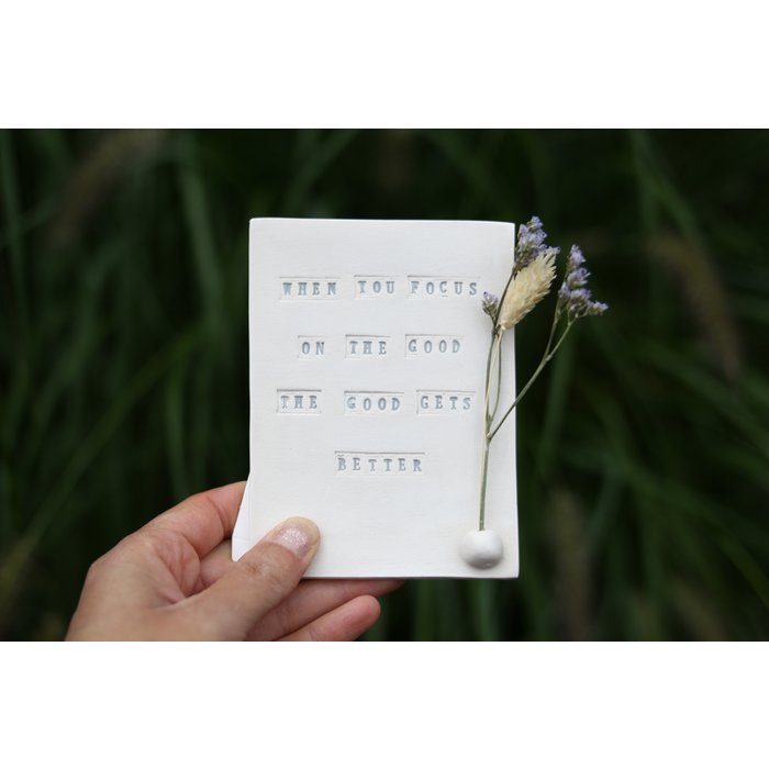 Een super lieve handgemaakte keramiek kaart verpakt in een doosje om cadeau te geven! Alle kaarten zijn handgemaakt, ambachtelijk gemaakt en gebakken in een atelier waardoor elk item uniek van vorm is. Aan de achterkant is een ezel van karton bevestigd zodat het kaartje mooi rechtop kan staan.Er zit ook een houder met gat in dit ontwerp voor een gedroogde bloem.