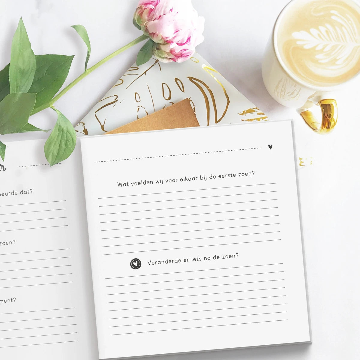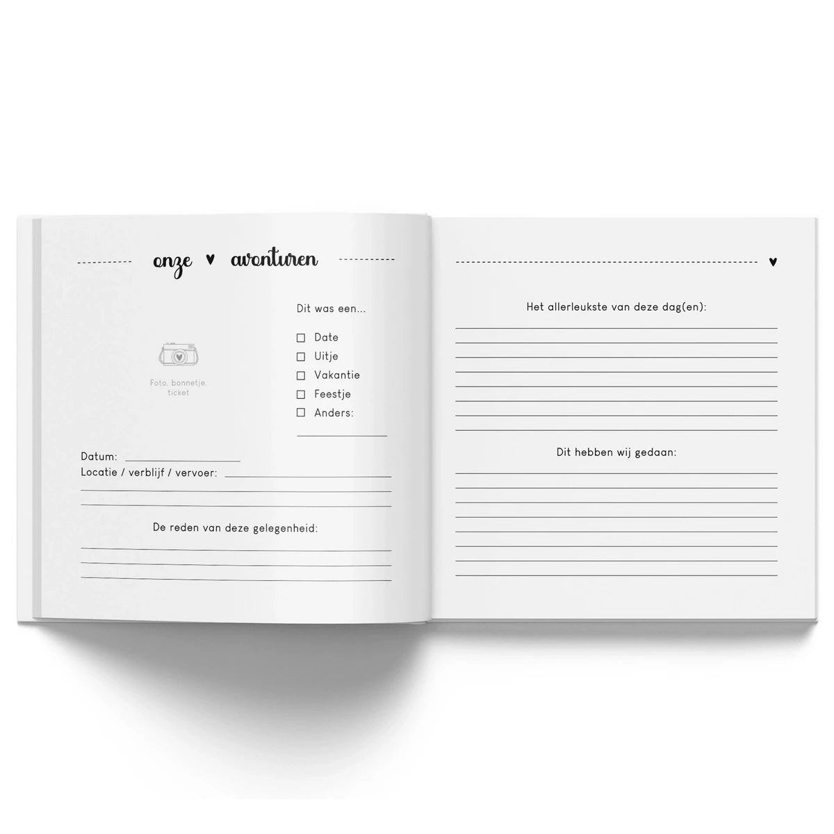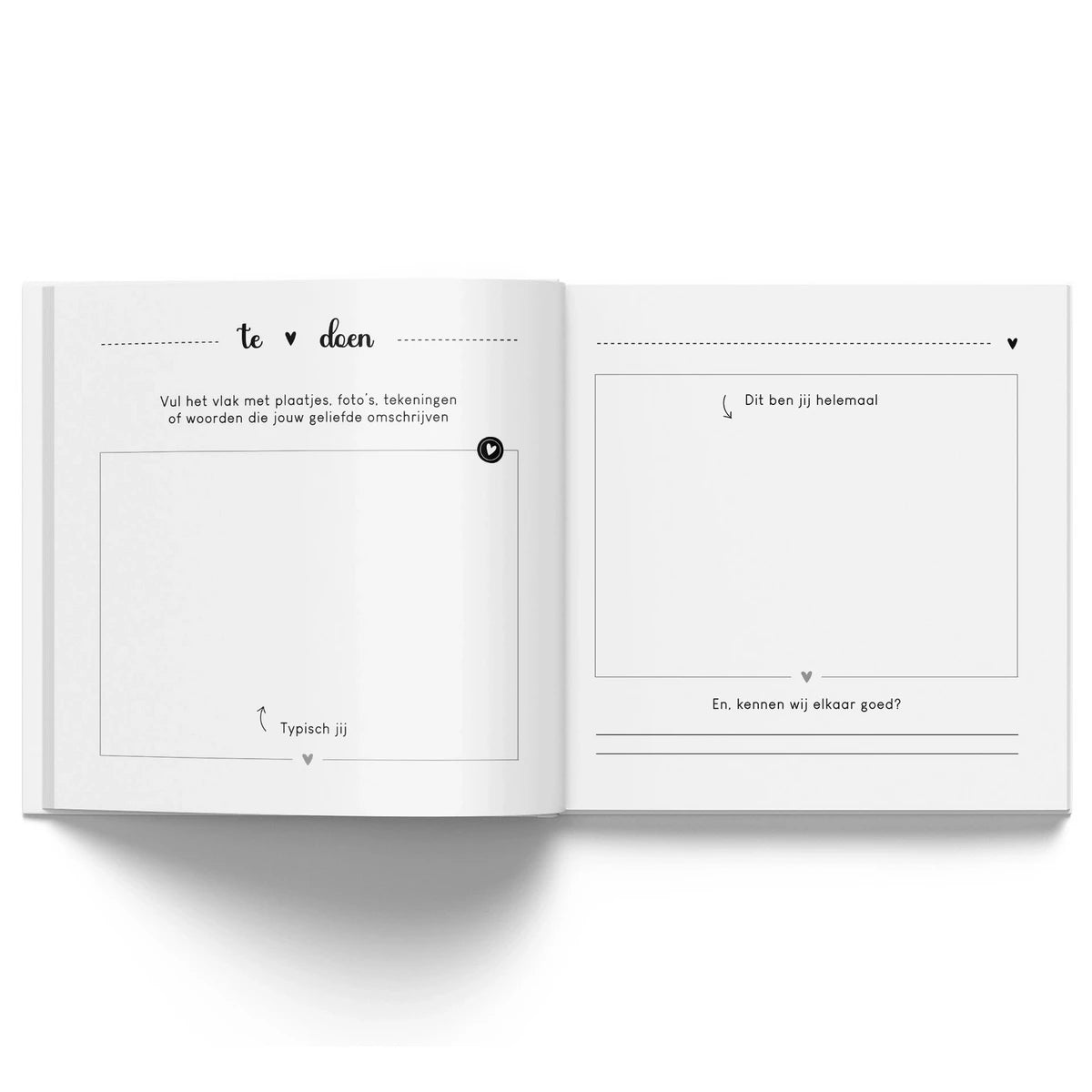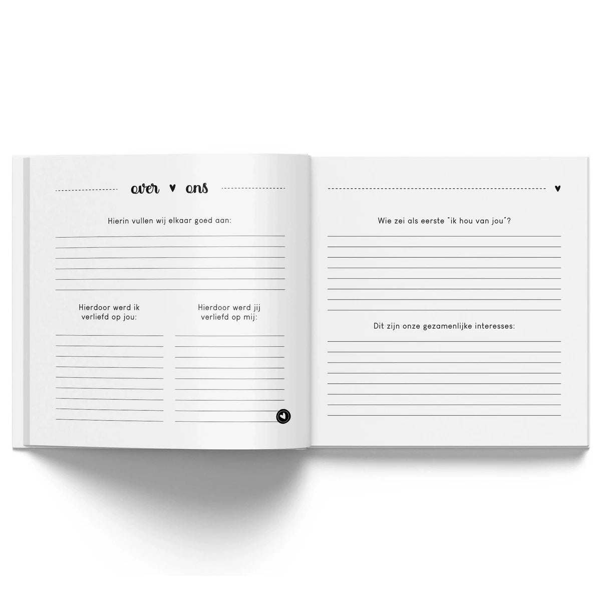 Een prachtig herinneringsboek voor jullie samen! In het herinneringsboek kan namelijk de unieke relatie die jullie hebben op een bijzondere manier worden vastgelegd. Zo vergeet je nooit meer de mooie momenten die jullie samen hebben beleefd en leer je elkaar nóg beter kennen. Dit is ontzettend leuk om later (samen) terug te lezen. Naarmate de tijd verstrijkt wordt het een steeds waardevoller herinneringsboek door én voor jullie samen. Jullie hoeven niet ontzettend creatief te zijn om het in te vullen, iedereen kan het. Jullie kunnen het boek samen invullen. Het boek is geschikt voor stellen van alle leeftijden! In het invulboek is er plek om over jullie relatie, liefde en elkaar te vertellen. Alle herinneringen die samen worden gemaakt kunnen eenvoudig worden vastgelegd in jullie eigen verhalen. Maar ook met mooie foto's van jullie samen, kaarten en briefjes, waardoor het een compleet én waardevol herinneringsboek wordt. Ook is er een interactief gedeelte in het invulboek wat gezamenlijk ingevuld én beleefd kan worden, dit zijn namelijk niet alleen vragen, maar ook uitdagende opdrachten, dilemma's en leuke activiteiten. Verder kunnen jullie alle avonturen vastleggen zoals een date, uitje, vakantie of feestje. Door het liefdesboek heen is genoeg plek voor mooie foto's zodat het een persoonlijk aandenken wordt aan jullie relatie. Ontzettend gaaf om cadeau te geven aan jouw grote liefde, ingevuld of nog leeg. Hiermee geef je niet alleen een cadeau; maar ook een blijvende herinnering! Wacht niet langer, de tijd vliegt voorbij, leg jullie belevenissen vast in dit prachtige herinneringsboek en beleef alle avonturen samen later opnieuw.