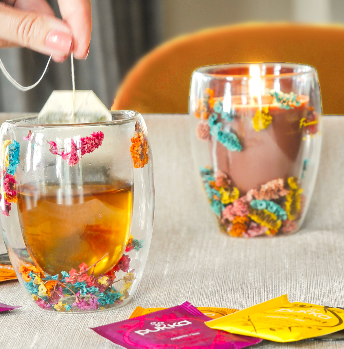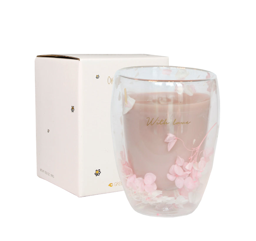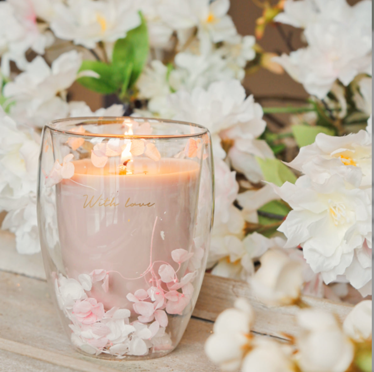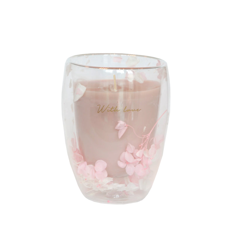 Deze luxe geurkaarsen hebben een dubbele wand waar gedroogde bloemetjes tussen zitten. Een èchte eyecatcher! Deze kaars ziet er niet alleen leuk uit, als de kaars is opgebrand, kan je het glas gebruiken als theeglas of een andere heet of koud drankje. Door de dubbele wand zorgt het glas ervoor dat je drankje warm blijft, zonder dat je handen ook heet worden.