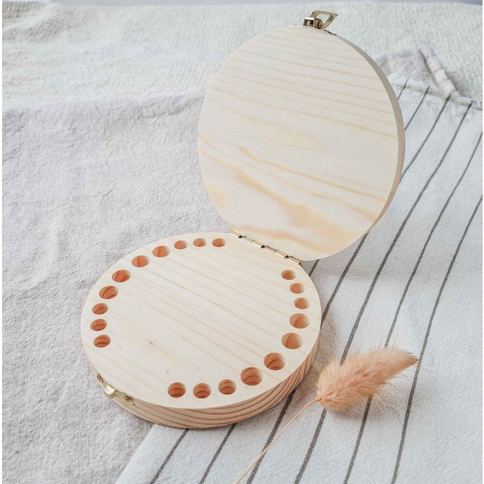 Wisselt je kind al tandjes? Bewaar dan deze melktandjes in dit mooie houten bewaardoosje! Zo raak je ze niet kwijt en kun je ze bewaren voor later. Het tandendoosje heeft verschillende vakjes zodat iedere tand en kies een eigen plekje heeft! Zo weet je kind precies welke tanden er al zijn gewisseld. De opdruk is op het deksel gegraveerd.