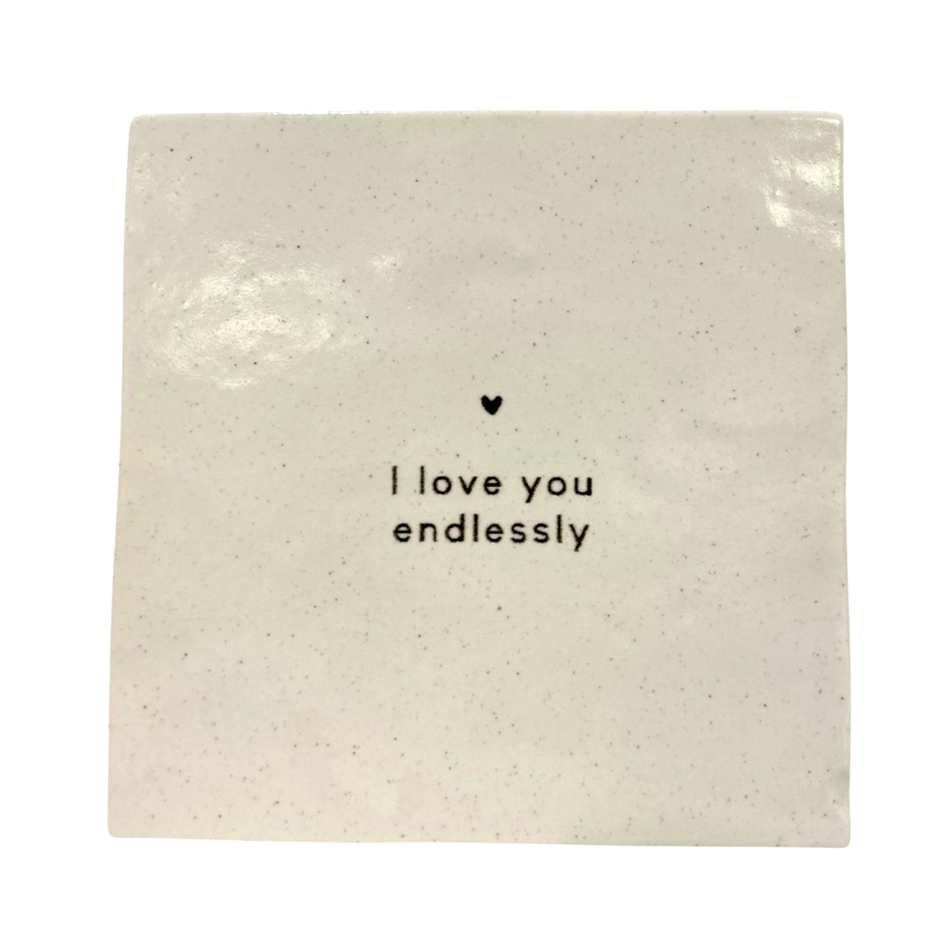 De tekst is geprint of gegraveerd op het tegeltje, dus geen sticker.
