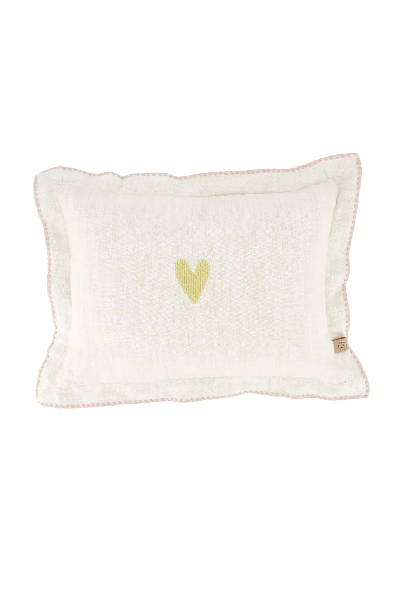 Dit prachtige Zusss sierkussen is perfect om je interieur een warme uitstraling te geven. Het sierkussen heeft een subtiel gouden hartje in het midden en een delicate roze gestikte rand, wat het echt bijzonder maakt. Gemaakt van zacht materiaal voor optimaal comfort en uitgevoerd in een tijdloze off white kleur. Met de afmetingen van 35x25 cm past dit Zusss sierkussen mooi op iedere bank of stoel.